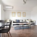 Apartamentul este chiar în centrul Bucureștiului, lângă galeria europeană "Muzeul Național de Artă al României". Cazarea de 50 m² se află la o distanță de 3,5 km de Arcul de Triumf și la doar 5 minute de mers pe jos de sala de concert a Ateneului Român, în stil neoclasic.